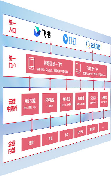 对协作平台提供支持服务,,,支持企业应用与协作平台对接,,包含组织同步、、、消息集成、、待办集成等。。支持目前主流的协作平台:钉钉、、企微和飞书。。